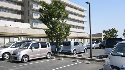 長田病院の駐車場。夜智彦が座ってたベンチはこの辺りか。(地図3)