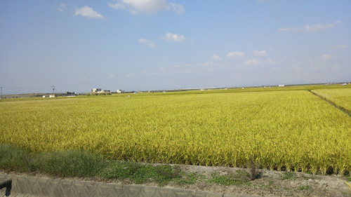 市街地からずっと南の方は水田地帯になってて、10月なので収穫直前の稲穂の原っぱなんだけど
